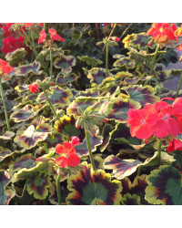 Le Geranium Zonal Panaché Mrs Pollock rouge, est originaire de L'Afrique du Sud. Il possède de magnifiques fleurs de couleur Rouge, sa longue floraison se passe aux mois de Avril, Mai, Juin, Juillet, Août, Septembre, Octobre, son feuillage a la particularité d'être Vert, Vert clair, Jaune, Rouge, Panaché, Décoratif, Dentelé, Rainuré, son exposition est plutôt Ensoleillé et Mi-ombragé. La plantation du Geranium Zonal Panaché Mrs Pollock rouge peut se faire en Bac, Pot, Jardinière, Pleine Terre. Pour une meilleure reprise de vos végétaux, privilégiez un sol plutôt drainé et argileux. Pour un résultat optimum et plus rapide, il est conseillé pour cette plante de planter 7 à 9pieds/m2, sa croissance est plutôt rapide. La résistance au froid du Geranium Zonal Panaché Mrs Pollock rouge est d'environ -4°C.