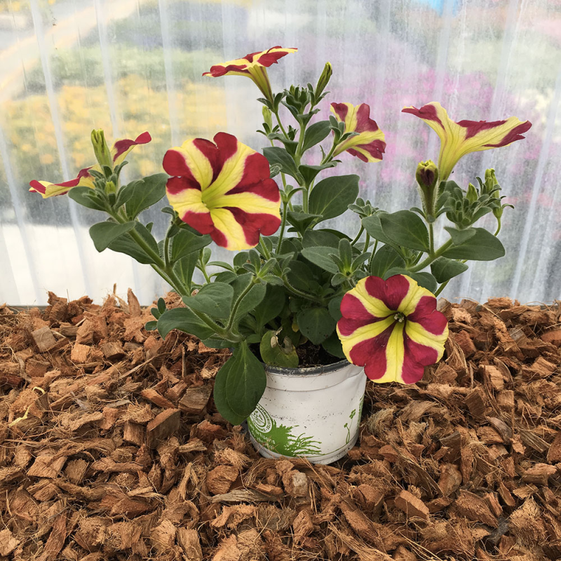 Pétunia de qualité, production horticole Française : votre Pétunia est déjà mature lorsque nous vous l'envoyons.Nos plantes sont bien protégées lors du transport. Petunia Sanguna en culture dans nos serres à partir de mi mars. Plante contenu dans un pot rond de 10,5cm, idéal pour une livraison sécurisée, une fois à maturité votre plante aura une hauteur d'environ 30 à 80cm.