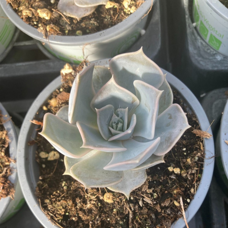 La Succulente Echeveria Lilacina est une Plante Vivace au port Retombant et Tapissant, de la famille des Crassulacées, son conditionnement se fait en Godet de 12cm. Nos plantes sont de culture artisanale et produites par un horticulteur dans le Nord de la France. Lors du transport, vos plantes sont protégées dans des coques en plastique recyclable. Elles arrivent chez vous, en boutons ou en fleurs.