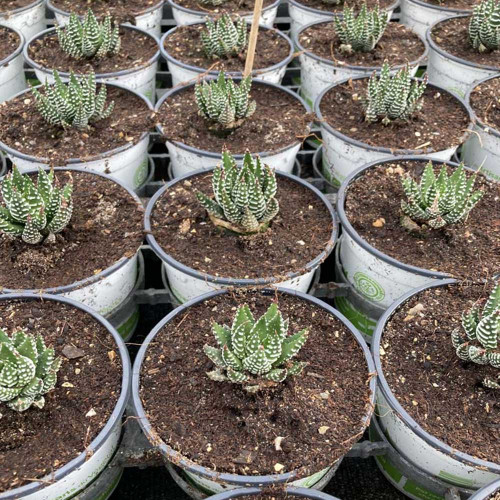 La Succulente Haworthia Super Fasciata est une Plante Vivace au port Retombant, de la famille des Crassulacées, son conditionnement se fait en Godet de 12cm. Nos plantes sont de culture artisanale et produites par un horticulteur dans le Nord de la France. Lors du transport, vos plantes sont protégées dans des coques en plastique recyclable. Elles arrivent chez vous, en boutons ou en fleurs.