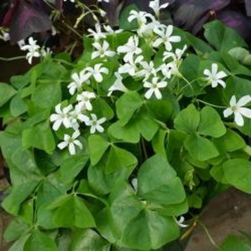 L'OXALIS Triangularis Groen, est originaire de L'Amérique du Sud. Il possède de magnifiques fleurs de couleur Blanc, sa longue floraison se passe aux mois de Mai, Juin, Juillet, Août, Septembre, Octobre, son feuillage a la particularité d'être Rouge, Noir, Panaché, Décoratif, Rainuré, son exposition est plutôt Ensoleillé et Mi-ombragé. La plantation de l'OXALIS BURGUNDY WINE peut se faire en Bac, Pot, Suspension, Jardinière, Pleine Terre, Massif, Bordure. Pour une meilleure reprise de vos végétaux, privilégiez un sol plutôt drainé et argileux. Pour un résultat optimum et plus rapide, il est conseillé pour cette plante de planter 4 à 6pieds/m2, sa croissance est plutôt rapide. La résistance au froid de l'OXALIS BURGUNDY WINE est d'environ -4°C. À l'Automne, n'hésitez pas à le tailler d'un tiers environ. En cas de fortes gelées, il faudra le couvrir avec un voile d'hivernage.