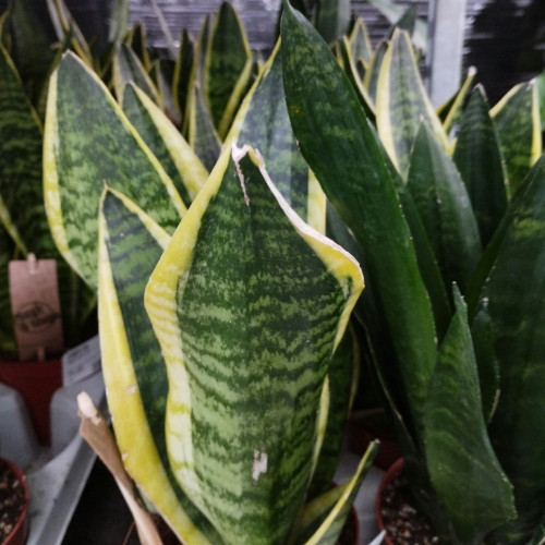 Sansevieria Trifasciata 'Laurentii' : Une variété avec des feuilles vertes bordées de jaune.