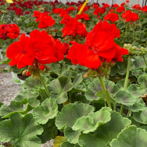 Les Géraniums Zonal Rouge fleurissent du printemps à l'automne, avec une période de floraison maximale de mai à octobre. Leur couleur rouge vif capte immédiatement l'attention, faisant d'eux une plante idéale pour apporter une touche vibrante dans vos aménagements extérieurs.