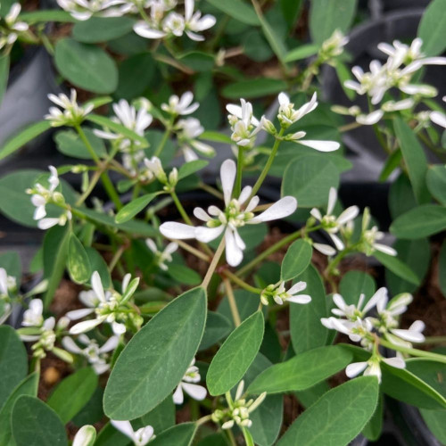 L’Euphorbe Diamond Frost, Euphorbia hypericifolia, est une plante à la floraison légère et aérée, dont les petites fleurs blanches délicates apportent une touche d’élégance à tout jardin. D'origine tropicale, elle est aujourd’hui cultivée dans de nombreuses régions grâce à sa résistance et sa capacité à fleurir tout au long de l’été. Cette euphorbe crée un effet lumineux en combinant parfaitement ses petites fleurs blanches avec des feuillages verts ou colorés.