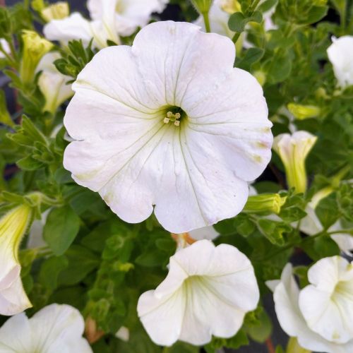 Le Surfinia White appartient à la famille des Solanacées et originaire des régions tropicales d'Amérique du Sud. Il se replante dès le mois de mai en jardinières, potées, bacs et massifs, pour une floraison de mai à octobre. Choisissez un endroit mi-ombragé, car il ne supporte pas le plein soleil. Idéalement, il faut le planter dans un sol frais et bien drainé, lors de la plantation, arrosez le copieusement, puis suivez l'arrosage pendant toute la saison, car il ne supporte pas le manque d'eau.