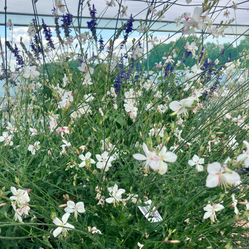Le Gaura de Lindheimer Geyser blanc du nom latin Gaura est originaire d'Amérique, elle appartient à la famille des Onagracées. Le genre Gaura détient plus de 20 espèces de Gauras. Elle se plante en potées fleuries, jardinières, rocailles et massifs dès le mois de mai pour une floraison abondante de juin jusqu'aux gelées d'octobre-novembre, elle résiste à des températures pouvant descendre jusqu'à -12°C.
